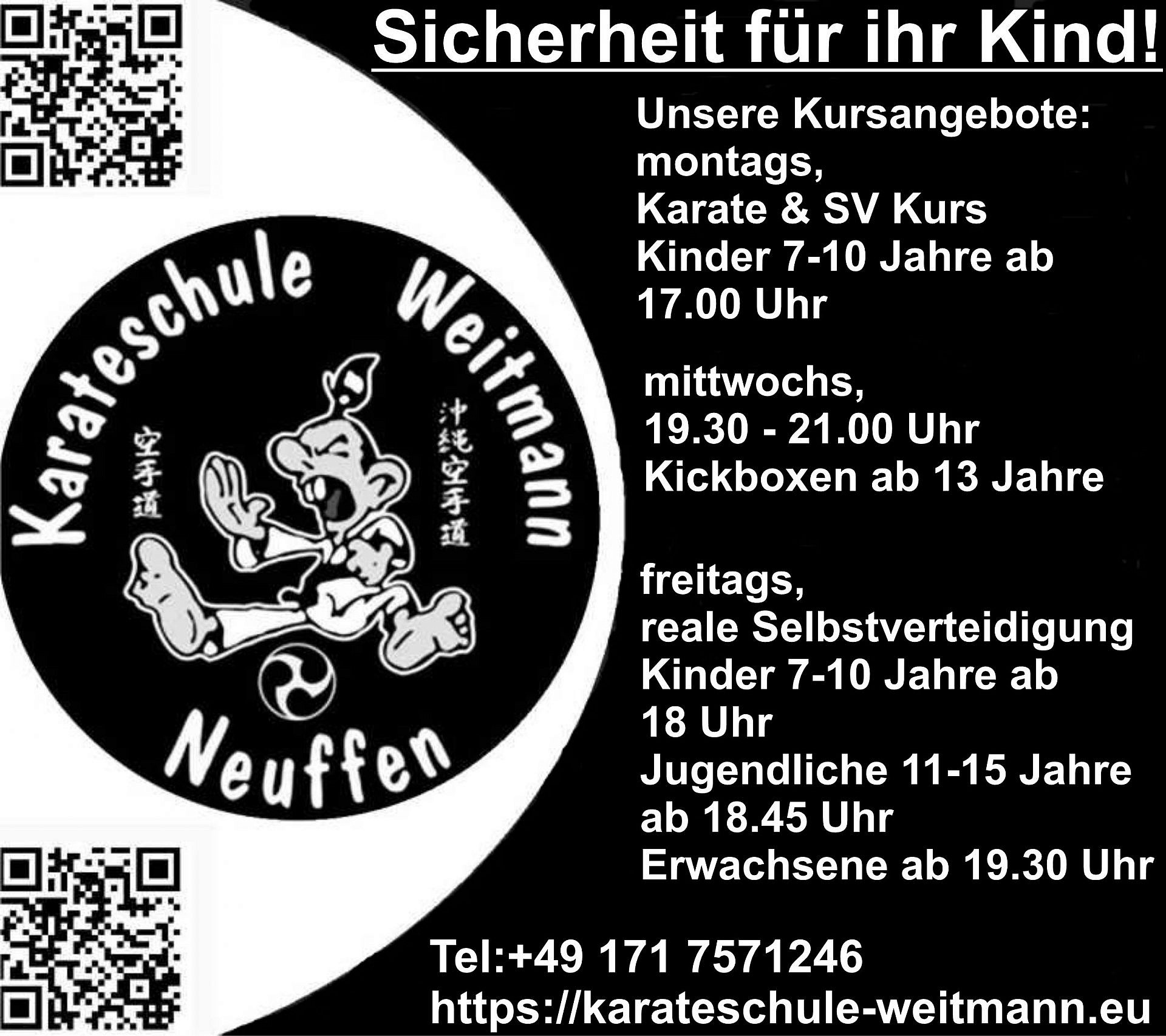 Infos unter info@karateschule-weitmann.eu oder unter 0171 / 7571246